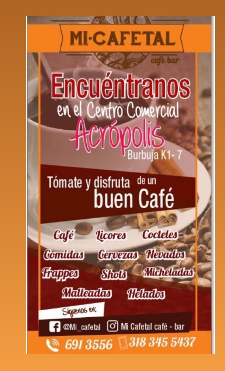 Welcome to MI CAFETAL — Café Bar, a delightful culinary gem nestled in the heart of Centro Comercial Acrópolis, Bucaramanga. This café offers a vibrant menu that caters to both coffee aficionados and casual diners alike.